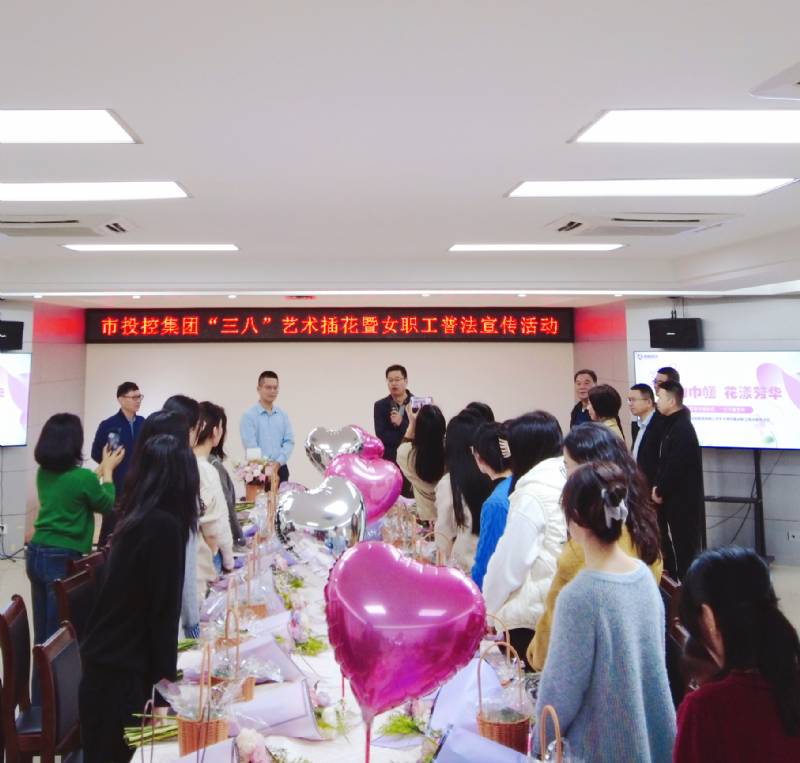 花開(kāi)春暖艷陽(yáng)天,巾幗芳菲相競(jìng)妍。為慶?!叭恕眿D女節(jié),豐富女職工精神文化生活,提升女職工藝術(shù)素養(yǎng),增強(qiáng)女職工法治意識(shí),3月5日下午,市國(guó)資委、市投控集團(tuán)聯(lián)合舉辦“魅力巾幗 花漾芳華”藝術(shù)插花暨女職工普法宣傳活動(dòng),市國(guó)資委、市投控集團(tuán)全體女職工參加活動(dòng)。市國(guó)資委黨委書記、主任林樹(shù)宏,集團(tuán)黨委書記、董事長(zhǎng)高文閣和集團(tuán)其他領(lǐng)導(dǎo)班子成員蒞臨活動(dòng)現(xiàn)場(chǎng)祝賀。